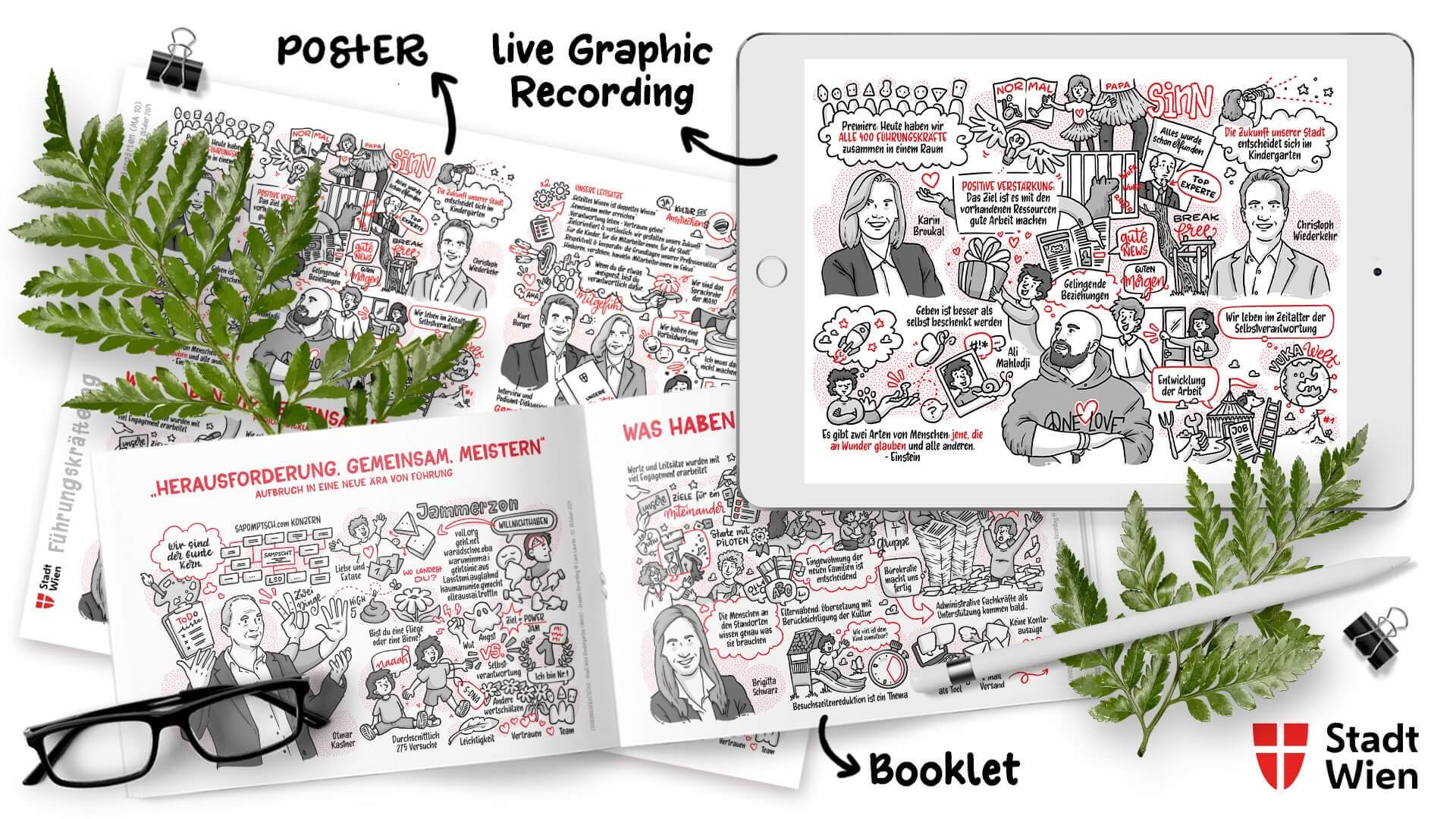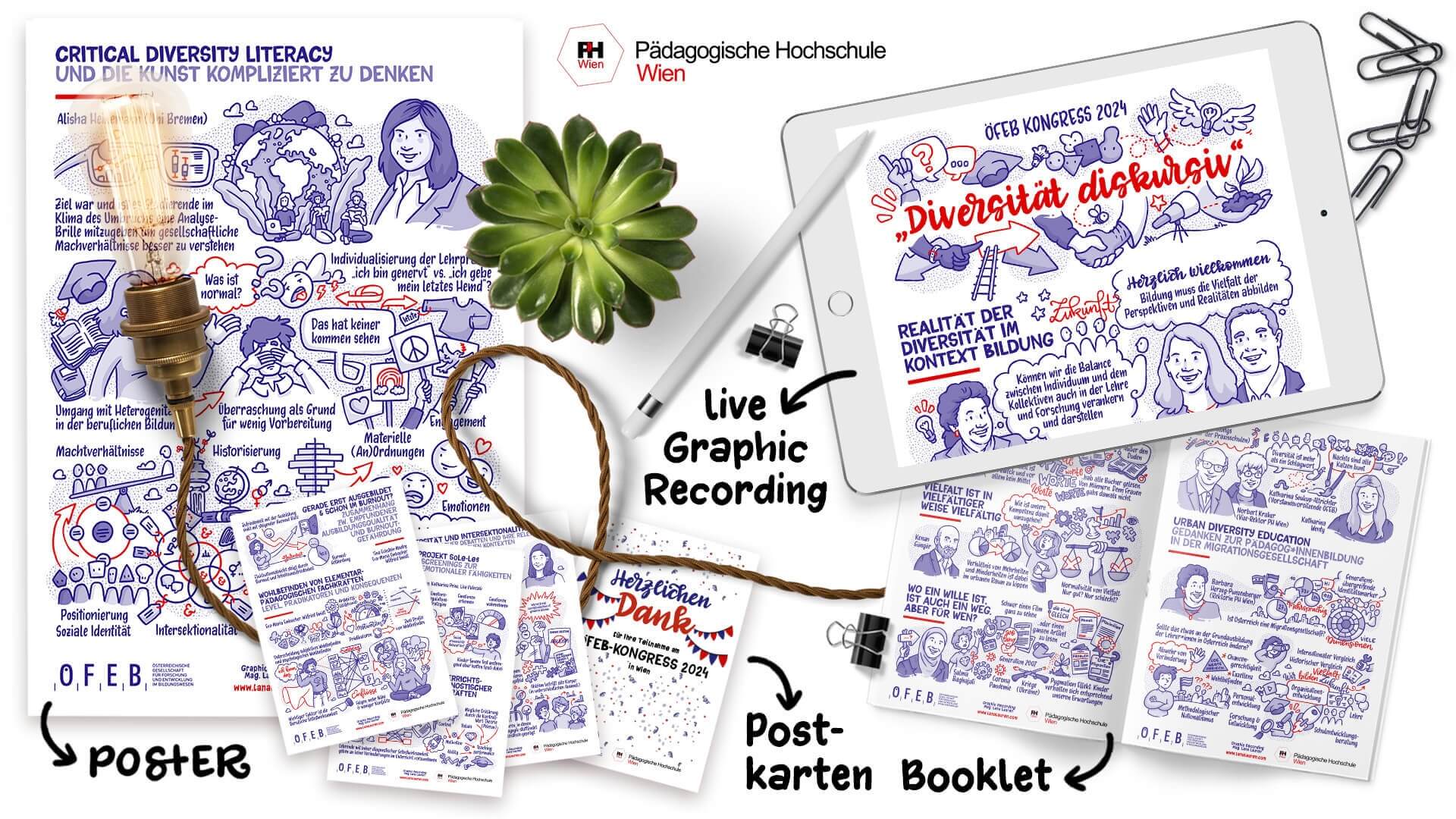 With my graphic recording, I visualized the diverse perspectives and impulses to make them tangible and sustainably usable. The image was printed on a postcard on-site and given to the participants as a keepsake.