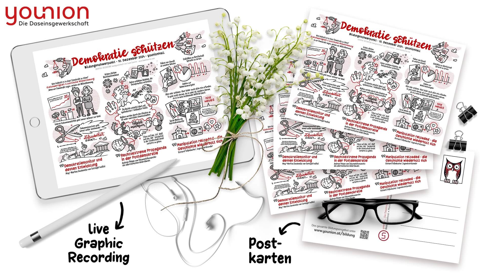 At the event “Protecting Democracy,” I had the opportunity to visually capture the inspiring lectures and discussions through my graphic recording. The event provided exciting insights into the challenges and opportunities for democratic processes in Austria and Europe.