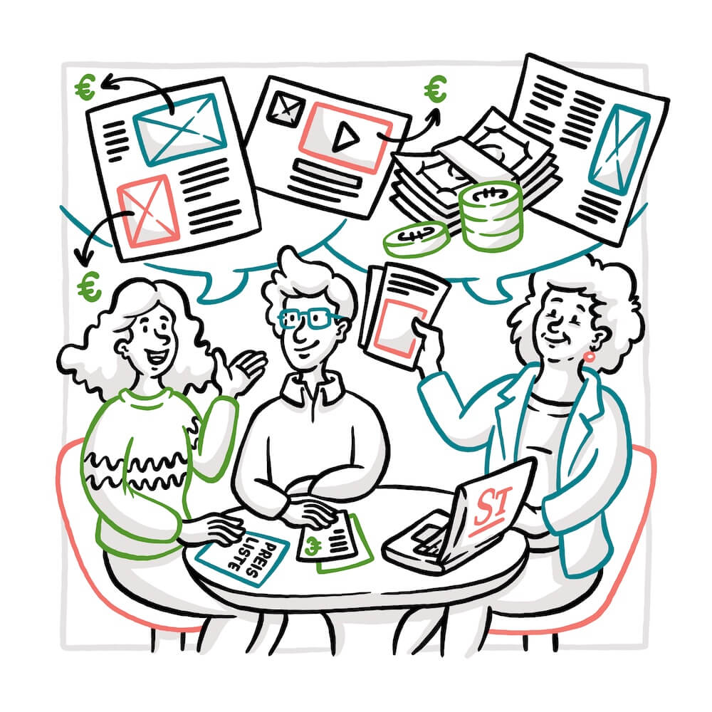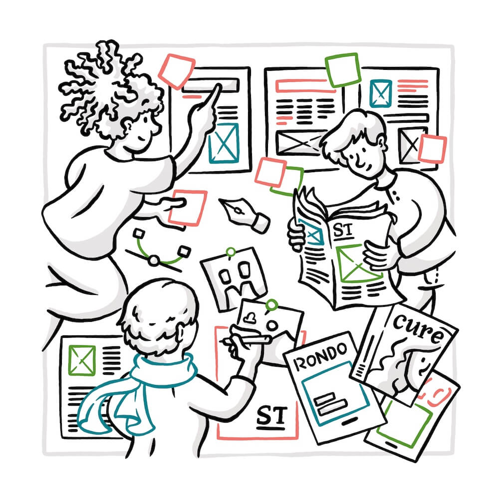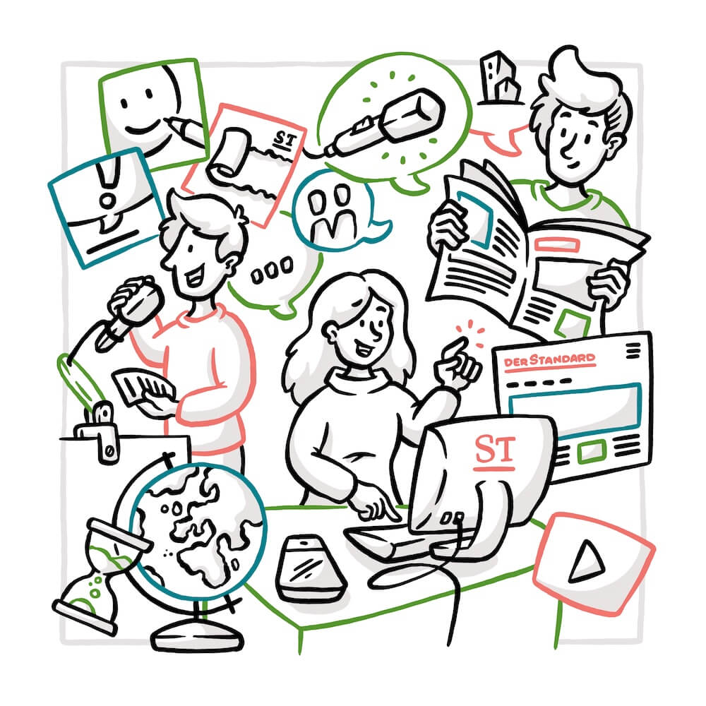 The organizational structure of STANDARD Medien AG has been restructured. To make the departments visible, all employees were asked what they believe defines their department. These questionnaires formed the basis for the presentation on the new website and the corresponding illustrations.