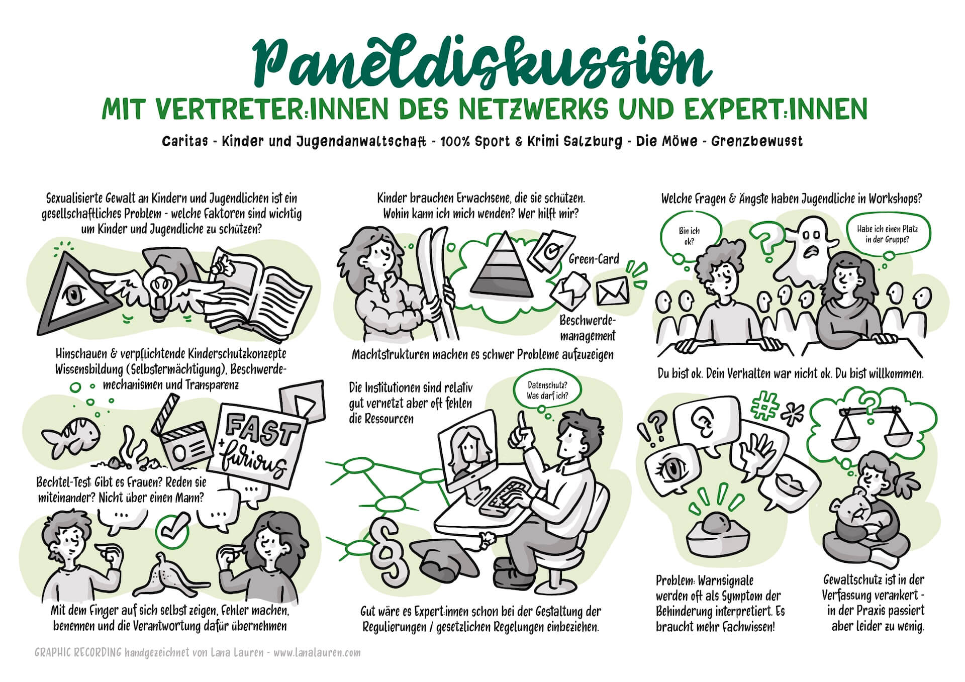 With my visualizations, I captured the central messages of this conference. It was moving to see how many dedicated people from very different fields came together to learn from each other and take action together. I am grateful to contribute a piece to making this valuable work visible through my graphic recording.