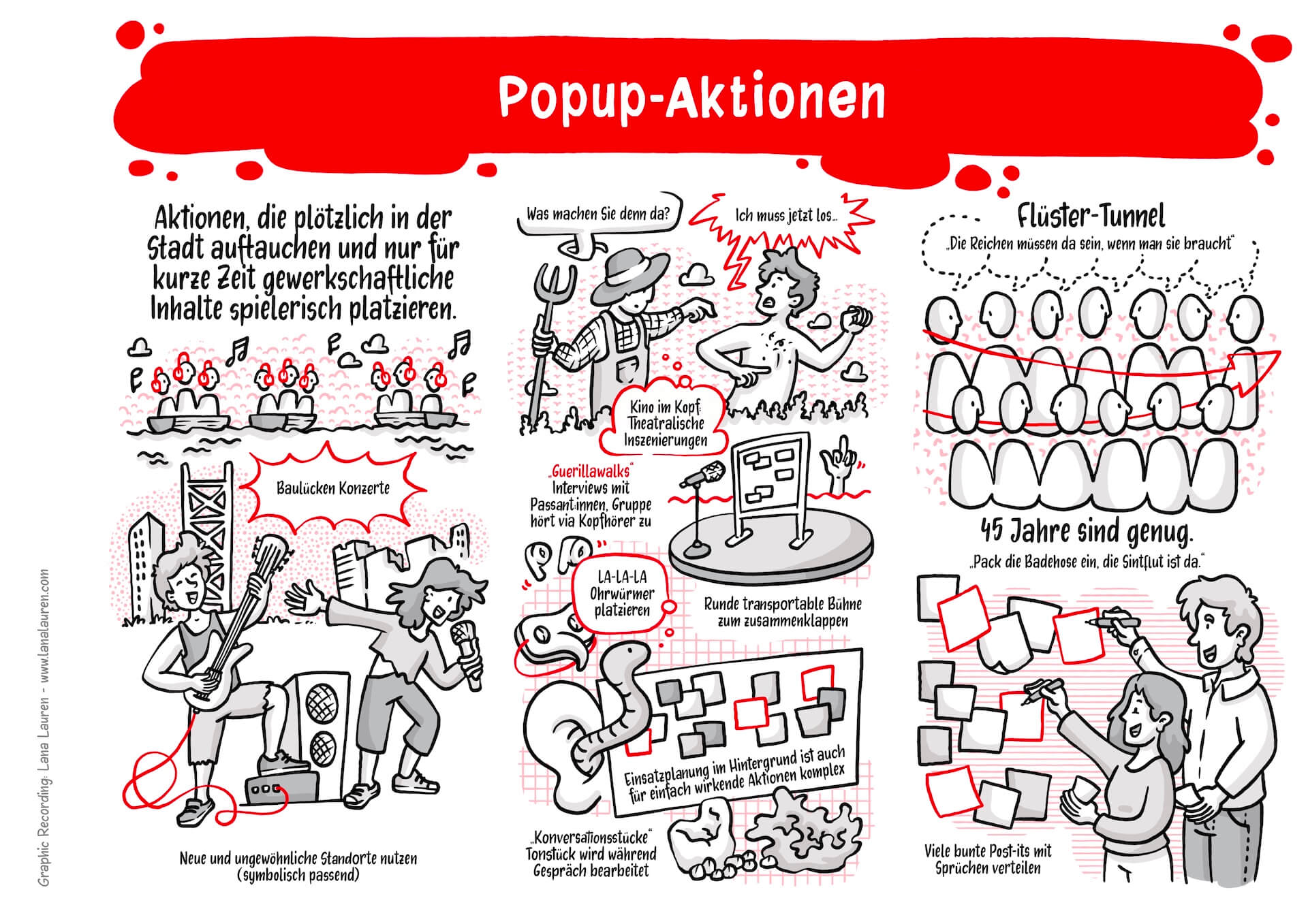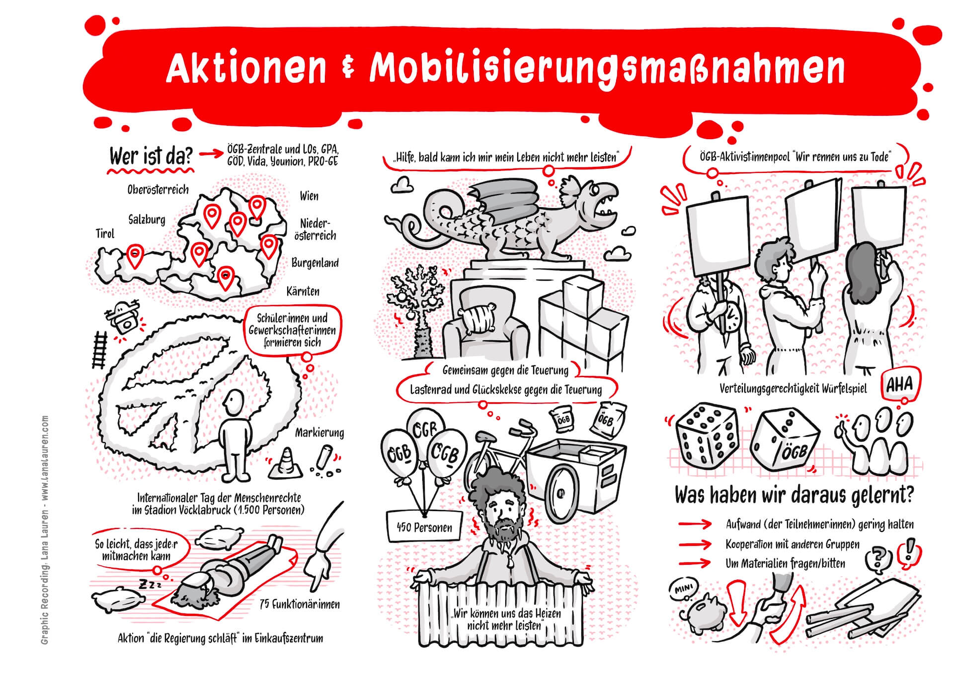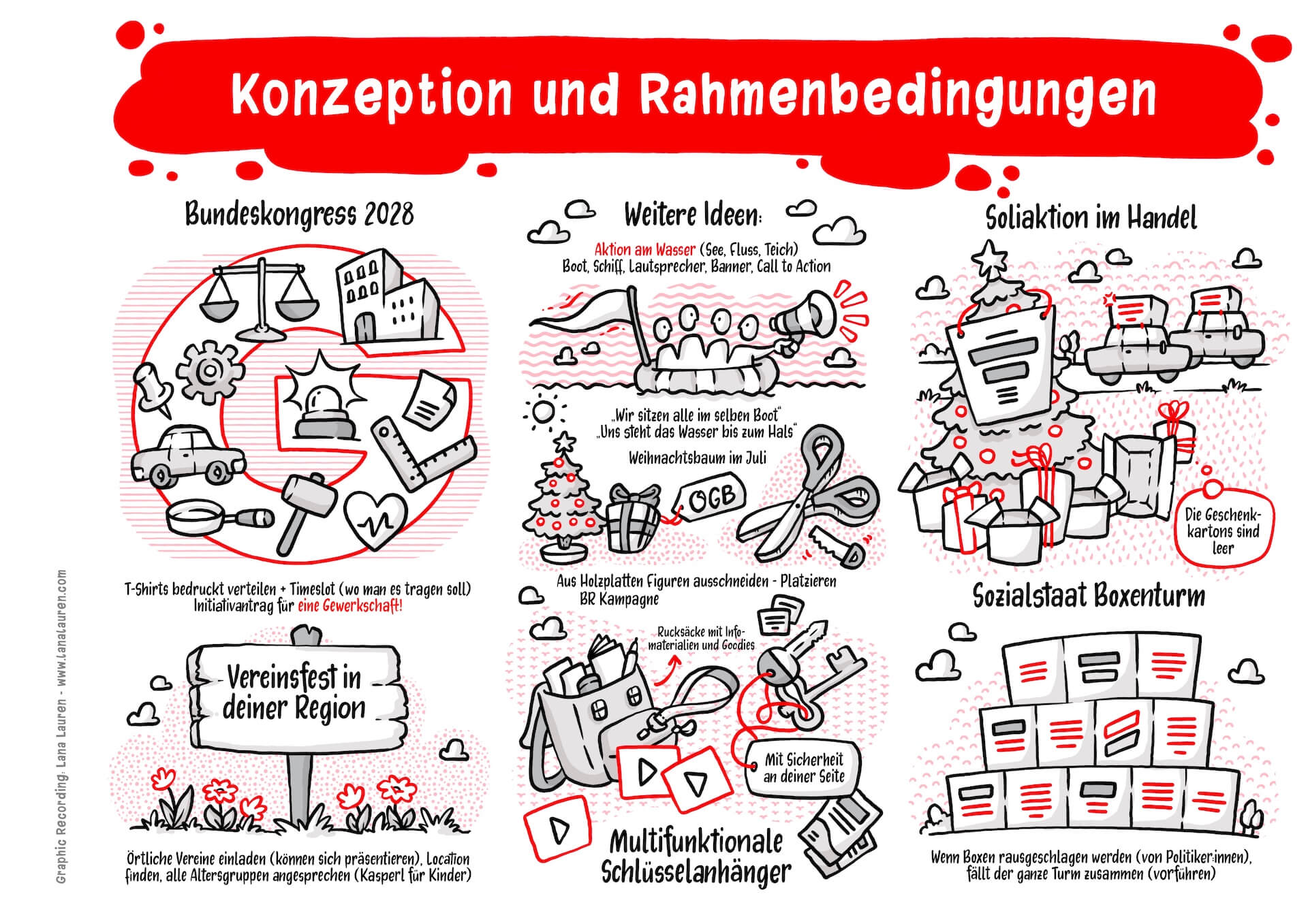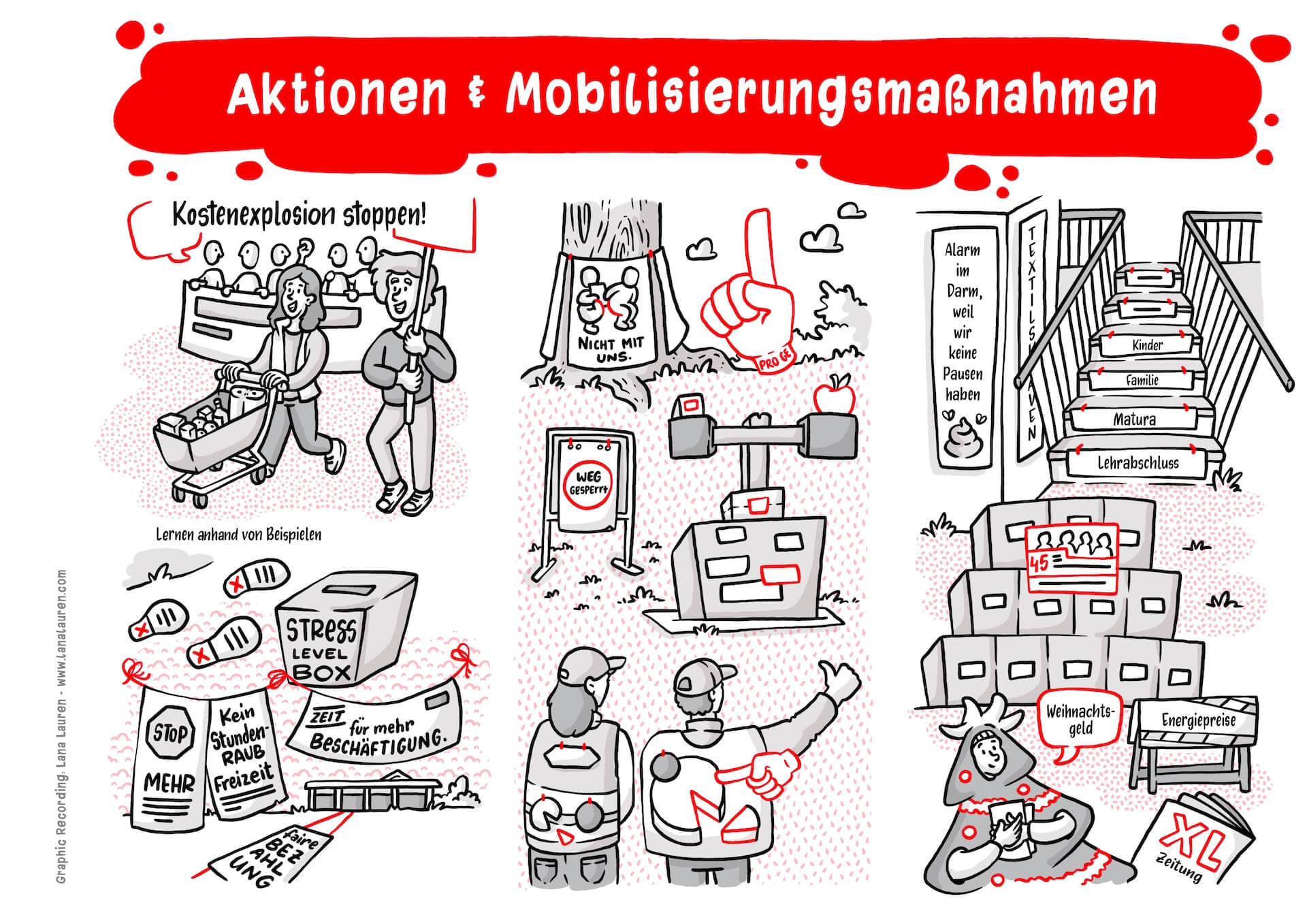 I visually accompanied the entire event and had the opportunity to dive into not only exciting but also very practical workshops. The illustrations not only supported the reflection on what was learned but also served as a conclusion and summary of the conference, motivating participants to apply creative approaches in their own union contexts in the future.