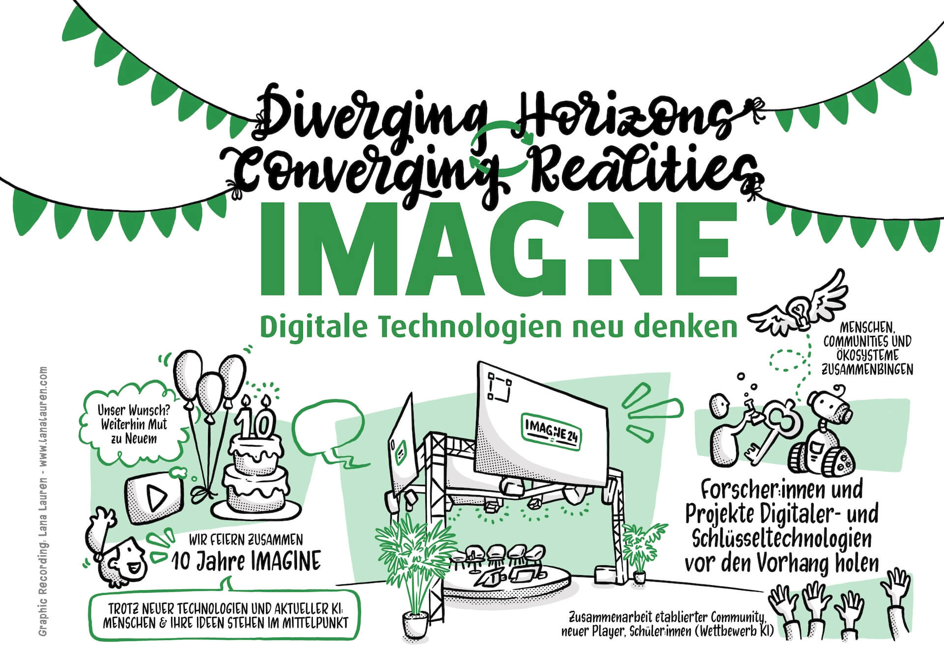 A special highlight: this year, IMAGINE celebrated its tenth anniversary, and I had the opportunity to create a video summarizing the events of the past years. How fortunate we were to be able to draw on the graphic recording images from the events for this. It is truly impressive to see how much has happened. The retrospective on 10 years of IMAGINE highlighted the significant progress made during this time.