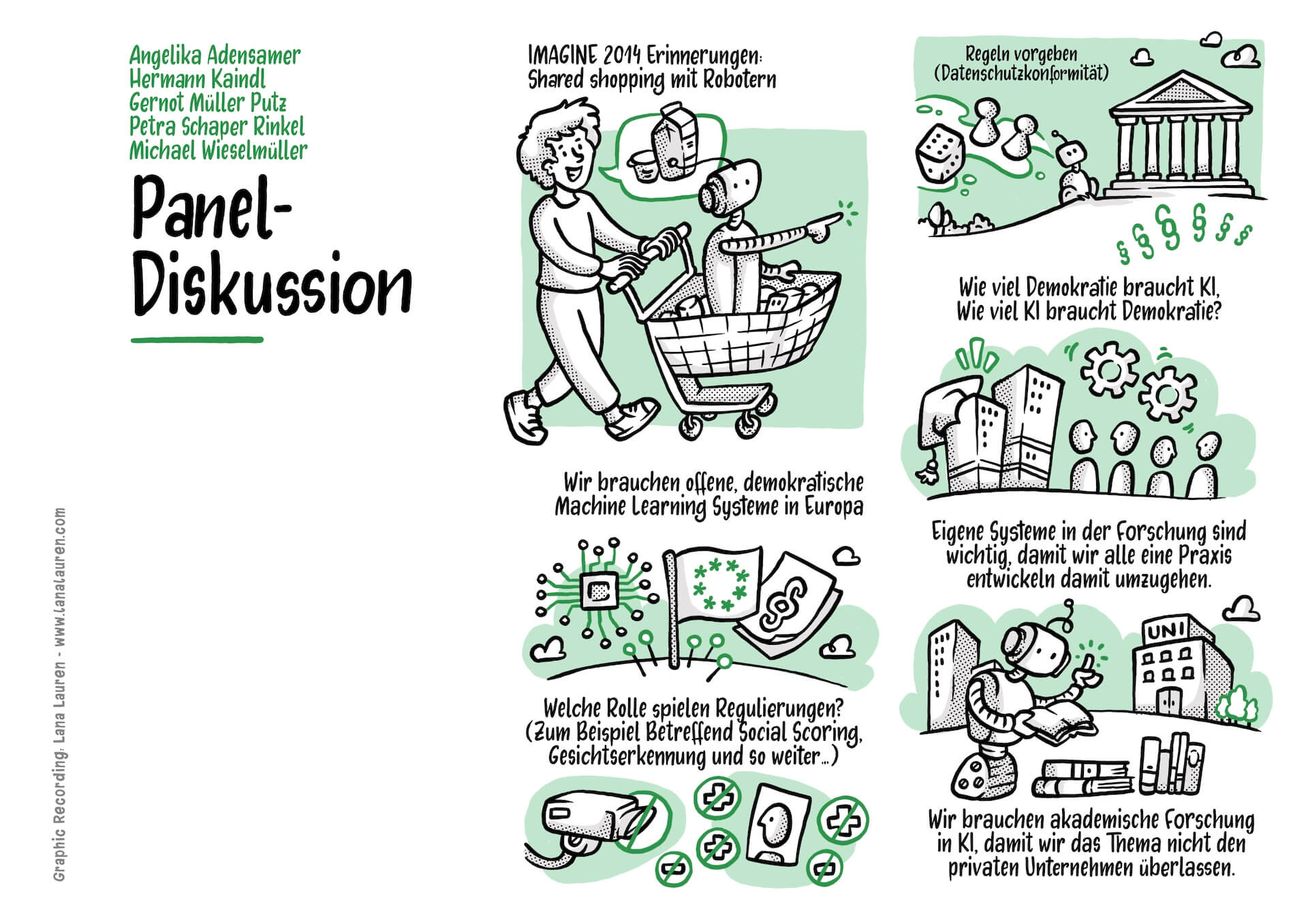 It was a great pleasure for me to once again accompany the IMAGINE, the flagship event of the Austrian Federal Ministry for Digital and Economic Affairs (BMK) and the Austrian Research Promotion Agency (FFG), as a graphic recorder this year. This event serves as a platform for the most innovative projects and researchers in the field of digital and key technologies in Austria. My graphic recording captured the highlights of the event – from the opening to the exciting keynotes and the new calls on topics such as robotics, artificial intelligence, and smart textiles.